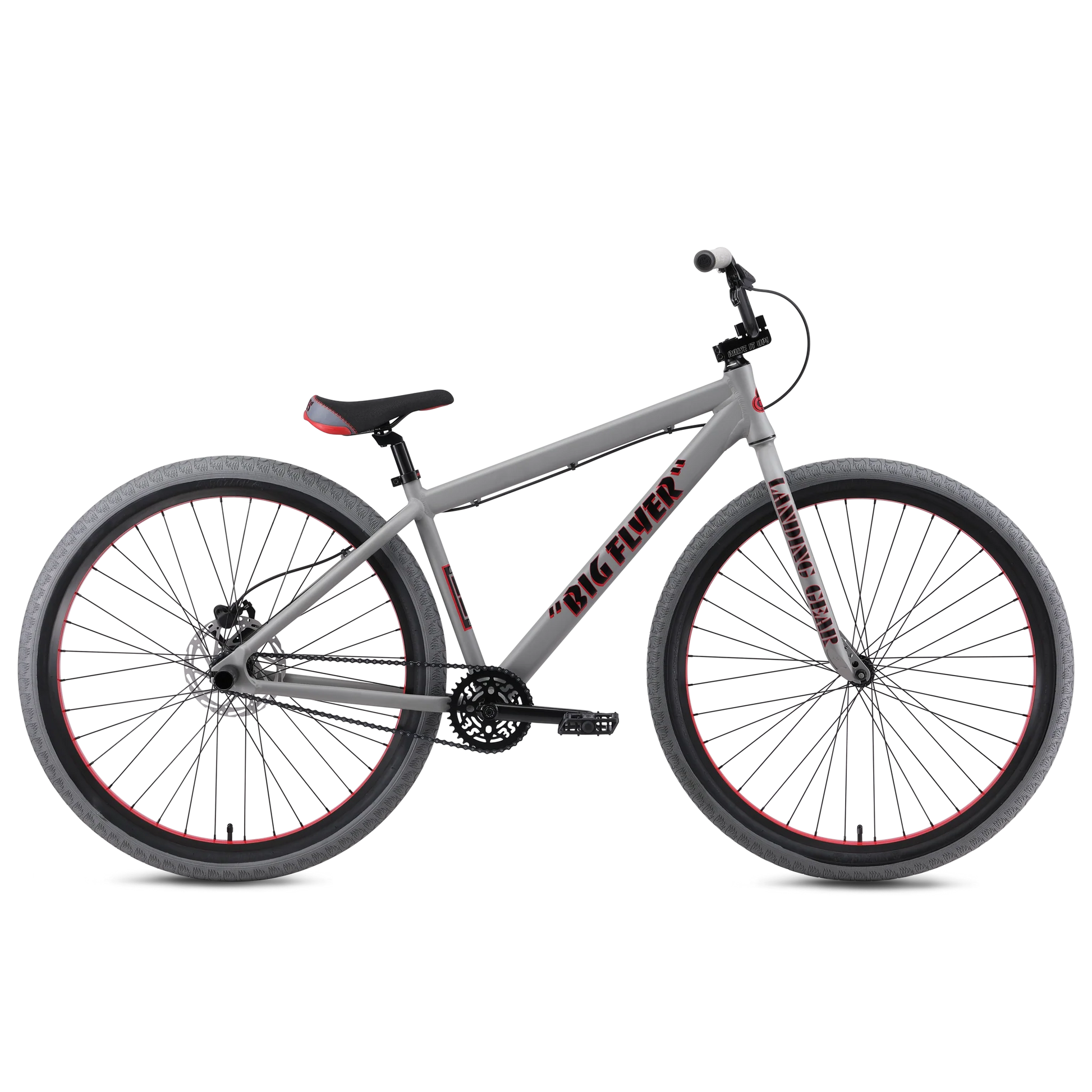 This is not your average bike. This is the 29" Big Flyer HD wheelie machine. Its 6061 aluminum Floval tubing frame and Cr-Mo Landing Gear forks are ready to take on the streets, while the SE 3-pc Cr-Mo cranks deliver the power you need. The new SE Captive seat provides ultimate hold and comfort while raising it up or just cruising along. You’ll be sure to stop on a dime with the new Tektro hydraulic disc brake, featuring a two-piston open system and a 180mm rotor for ultimate stopping power. Rolling on 29 x 2.4” Bozack tires, the Big Flyer HD grips the pavement and doesn't let go.