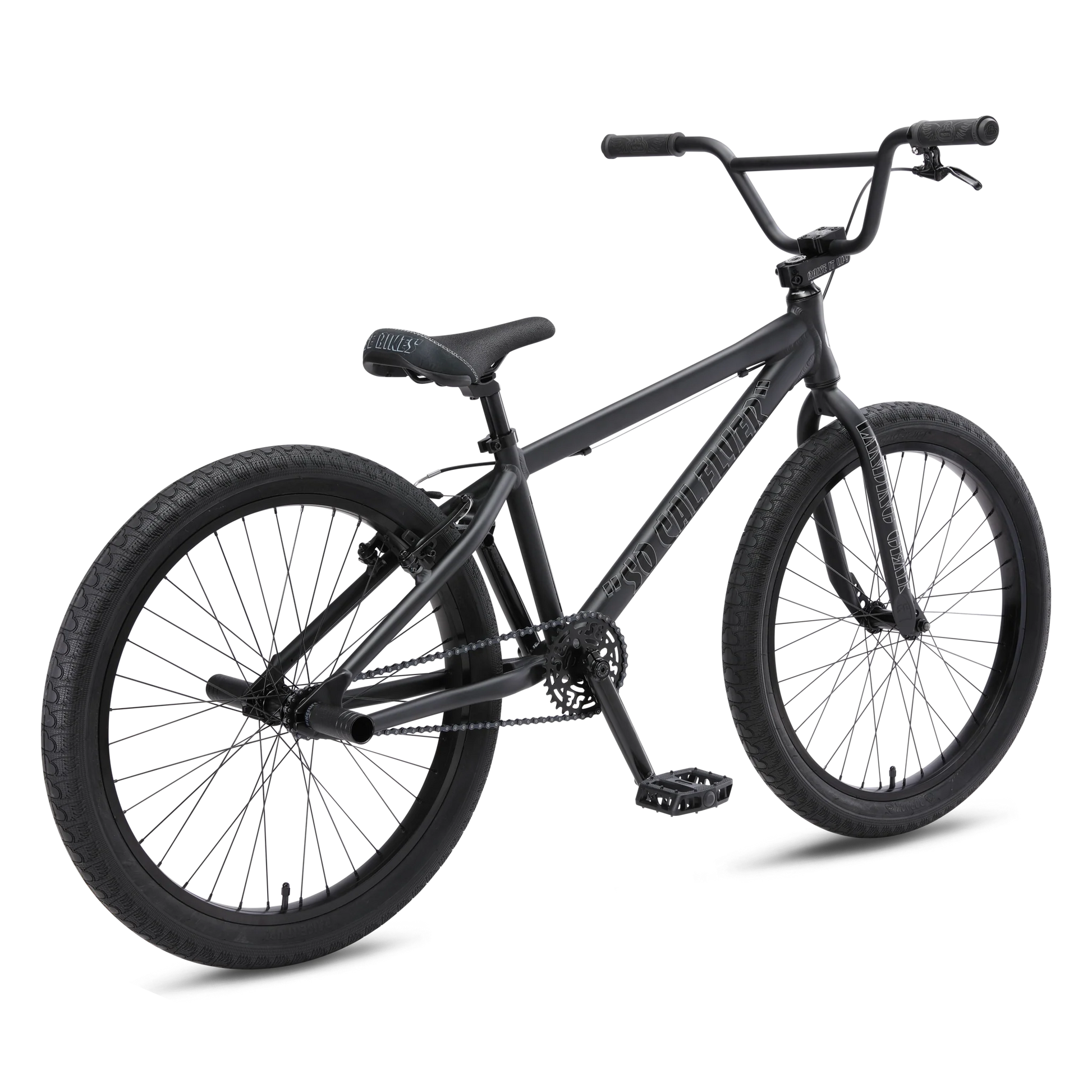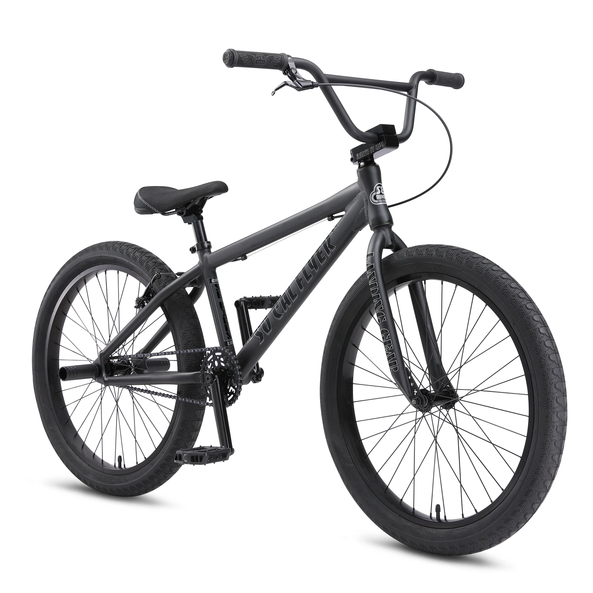 The 24" So Cal Flyer is for smaller riders who want to go big! This bike has a classic 6061 aluminum Floval tubing frame built with a sturdy & durable sealed mid bottom bracket. The Promax V-brake gives you dependable braking power when learning to wheelie, while the new SE Captive seat provides a secure and comfortable feel. The So Cal Flyer is also equipped with SE nylon fiber pedals and flangeless Mushroom Wing grips. Plus, with 24” x 2.4” Bozack tires and Wheelie Pegs included, you’ll be ready for anything.